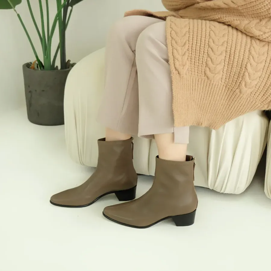【現貨 36號】研究室的選品・直腿利器Clara!柔軟羊皮俐落短靴 綠 全真皮【Major Pleasure】-煎茶色