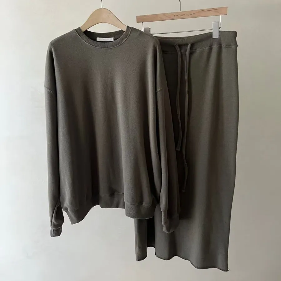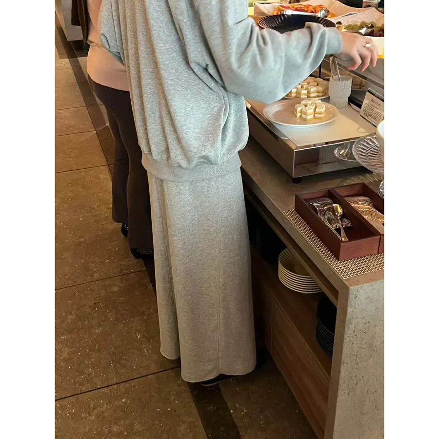 睡衣柔軟感!純色微刷毛簡約抽繩長裙 可成套