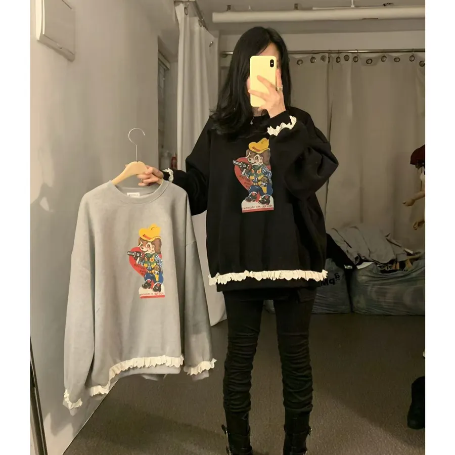 一見鍾情的可愛!昭和狗狗拼接蕾絲大學T