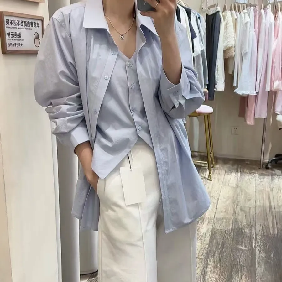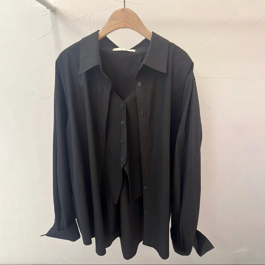 佩妮自留!挺料假兩件背心襯衫