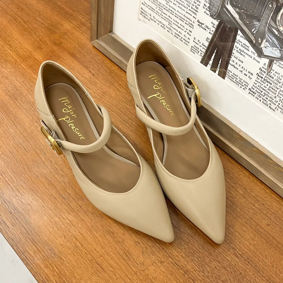 【現貨 40號】 研究室的選品・輕鬆穿小貓跟!惦惦腳復古繫帶跟鞋 膚 【major pleasure】-日曬色