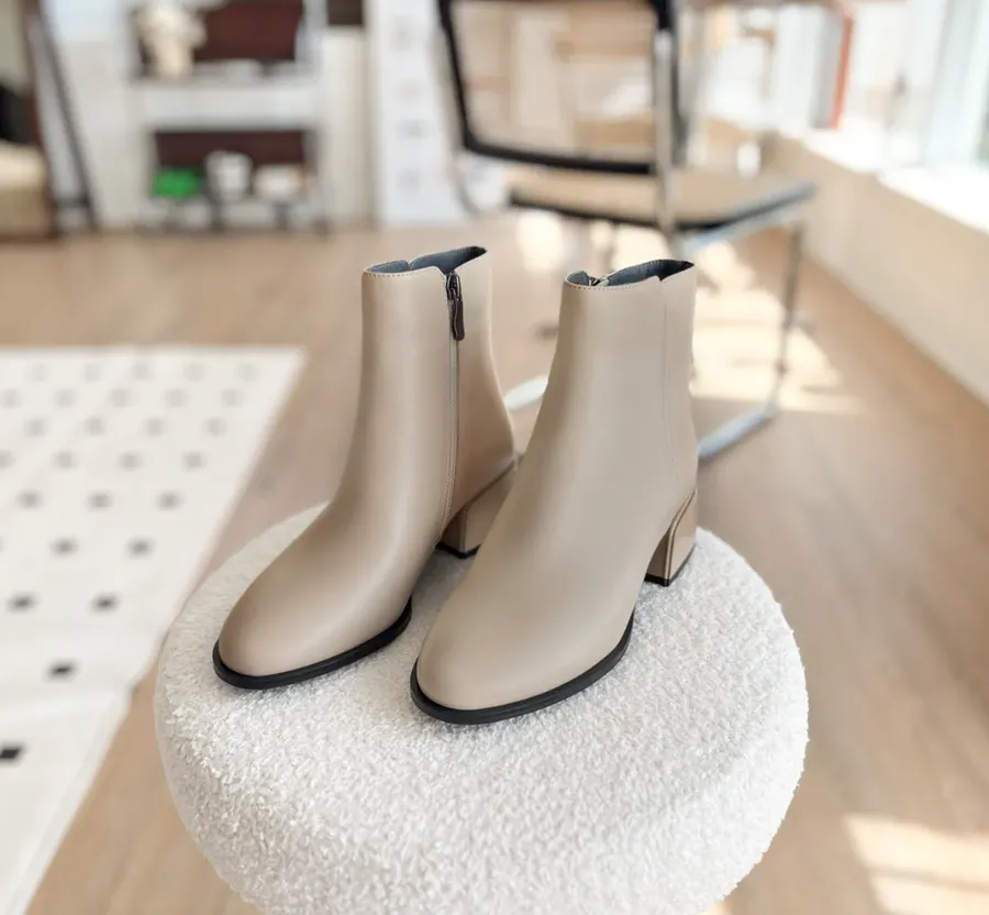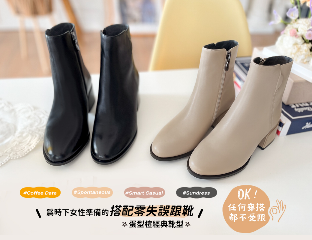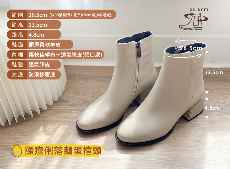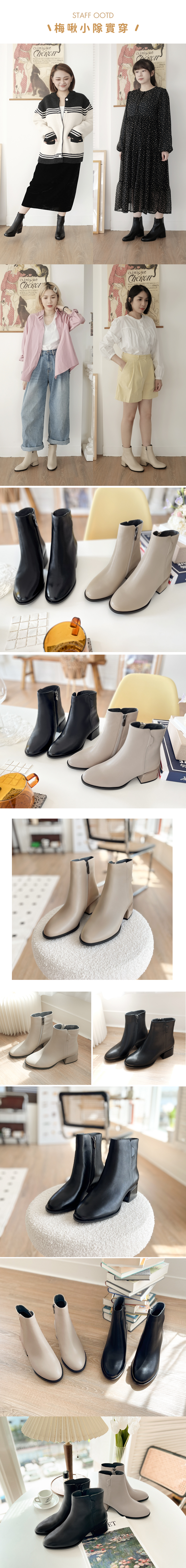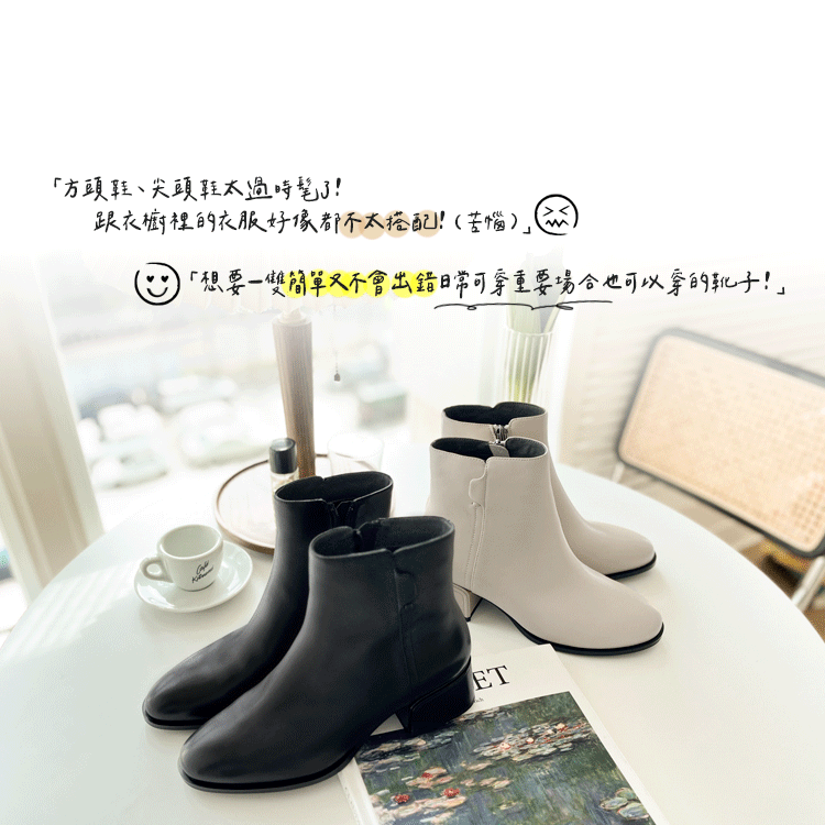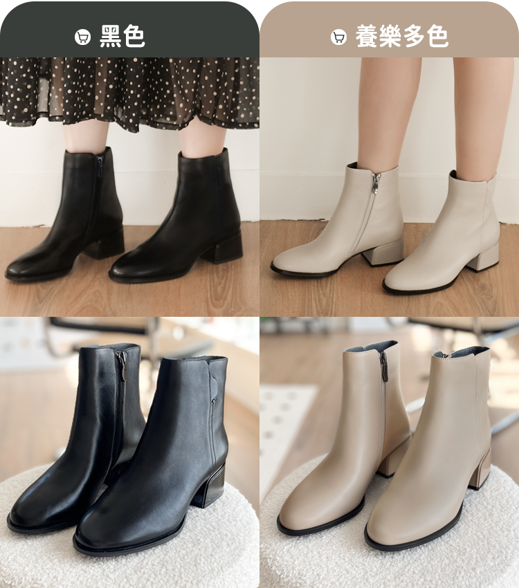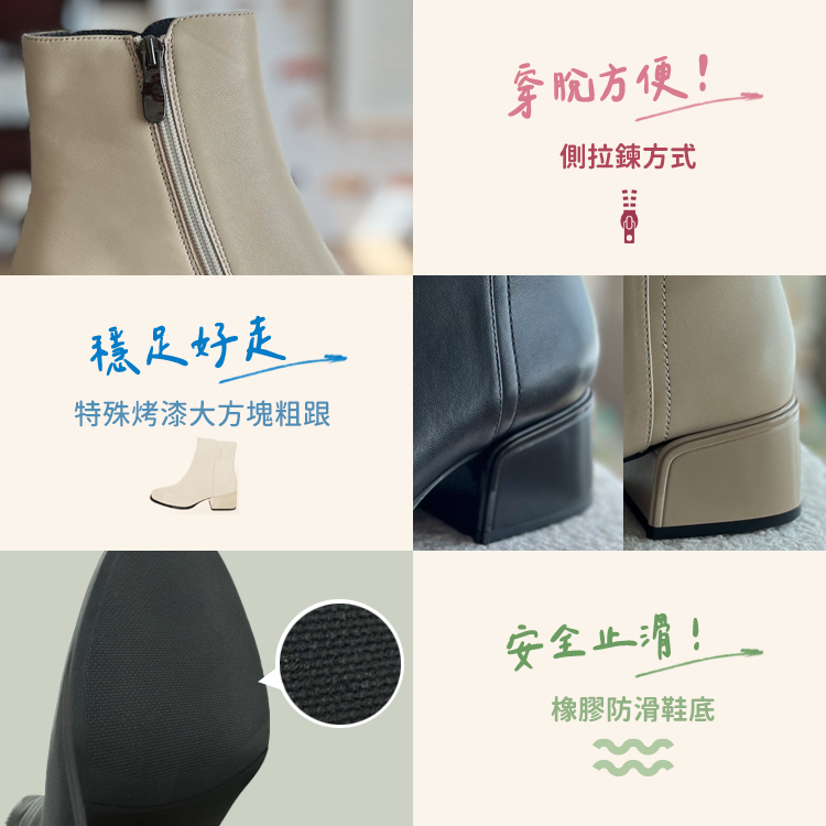 ▸長腿效果!厚底側拉鍊牛皮短靴