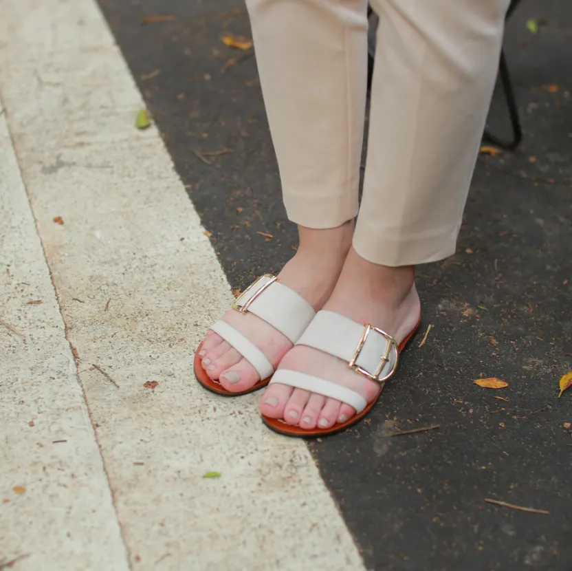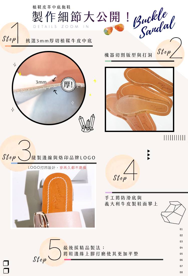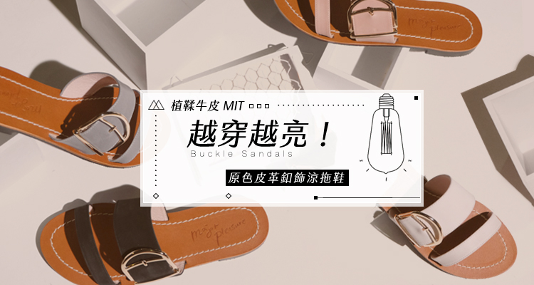 【現貨35號】蜜蠟光澤!越穿越亮植鞣皮革涼拖鞋 全真皮 MIT -米白