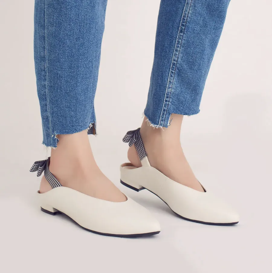 【現貨 21.5 22 22.5 23.5 26號】後繫帶穆勒!結花小禮物尖頭鞋 全真皮 MIT 【Major Pleasure】