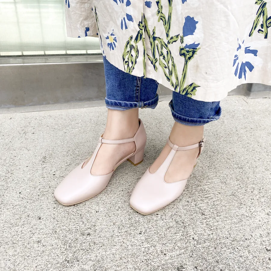 【現貨 25.5 26號】瑪莉珍變奏曲!T字繫帶中跟鞋 粉 全真皮 MIT 【Major Pleasure】-粉玫瑰