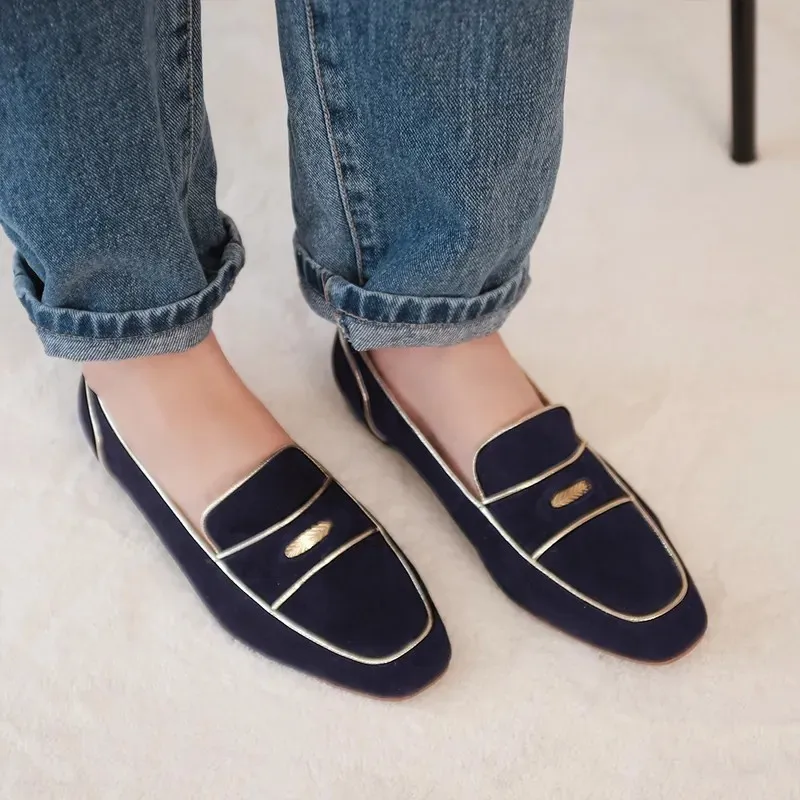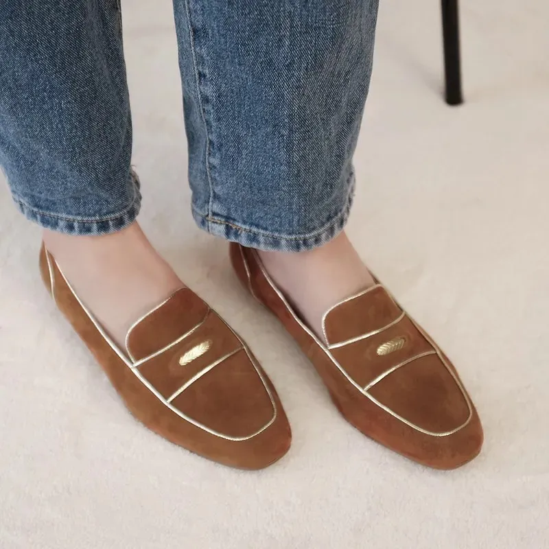 【現貨 22,22.5,23,25,26,26.5號】幸運招福鞋!金色滾邊羽毛樂福鞋 全真皮 MIT【Major Pleasure】