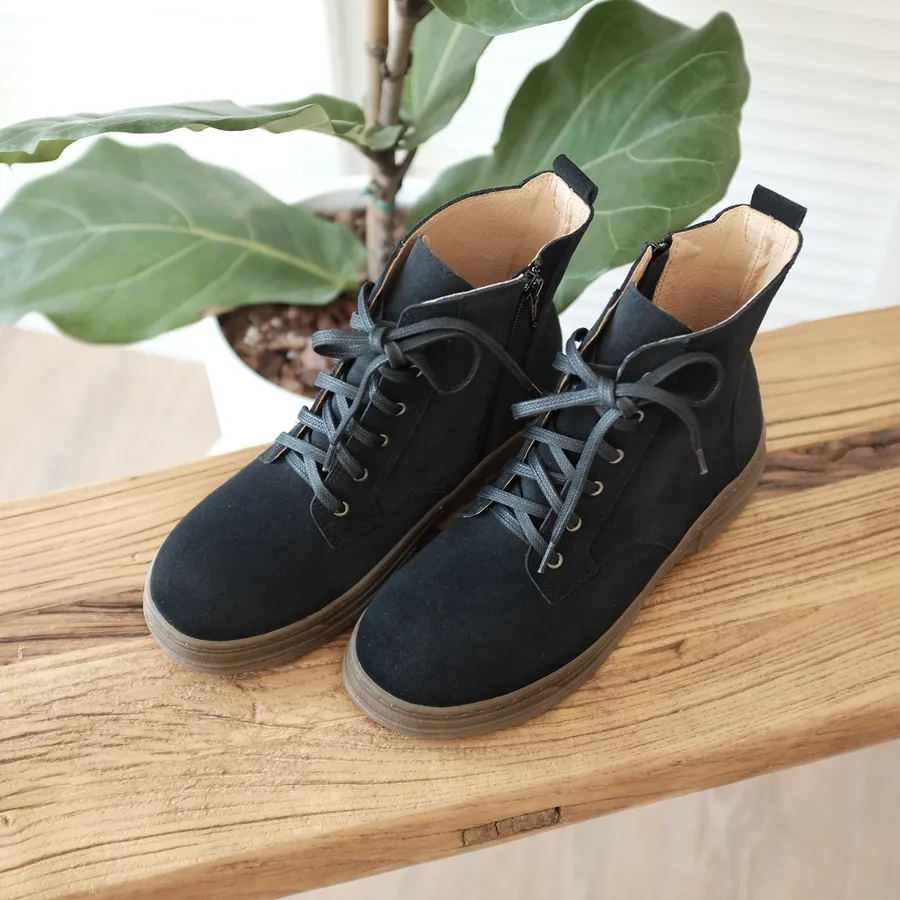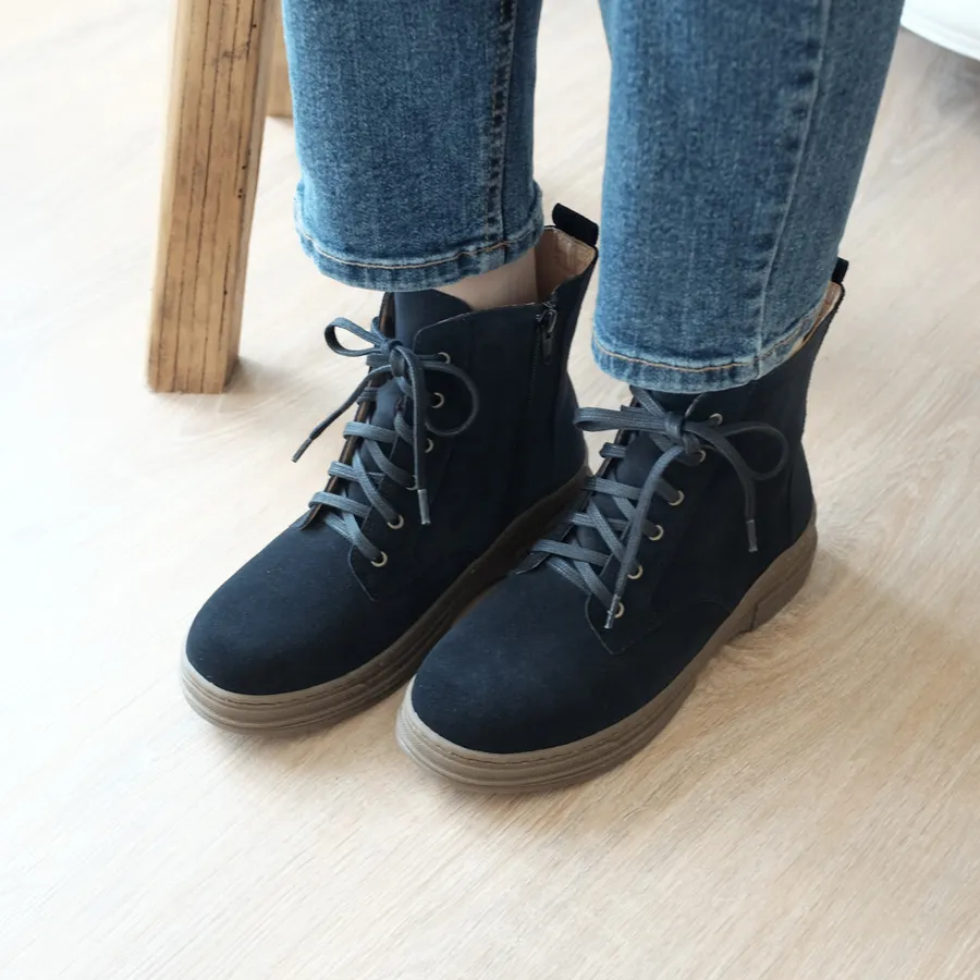 ▸長腿效果!厚底側拉鍊牛皮短靴
