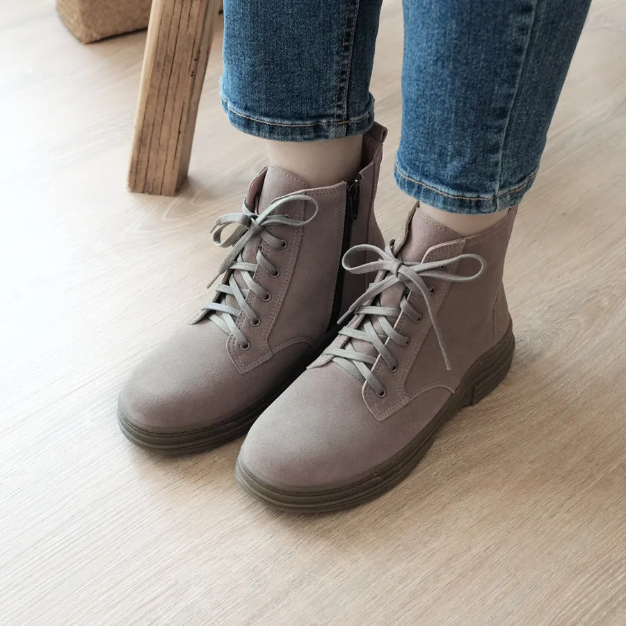▸長腿效果!厚底側拉鍊牛皮短靴