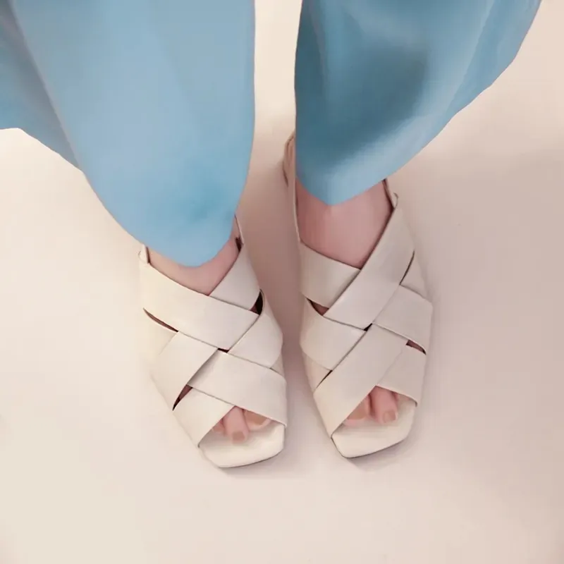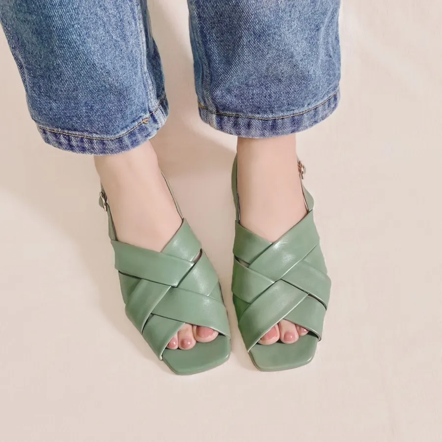 【現貨 35 41號】一秒修飾術!寬帶交叉方頭涼鞋 全真皮 【Major Pleasure】