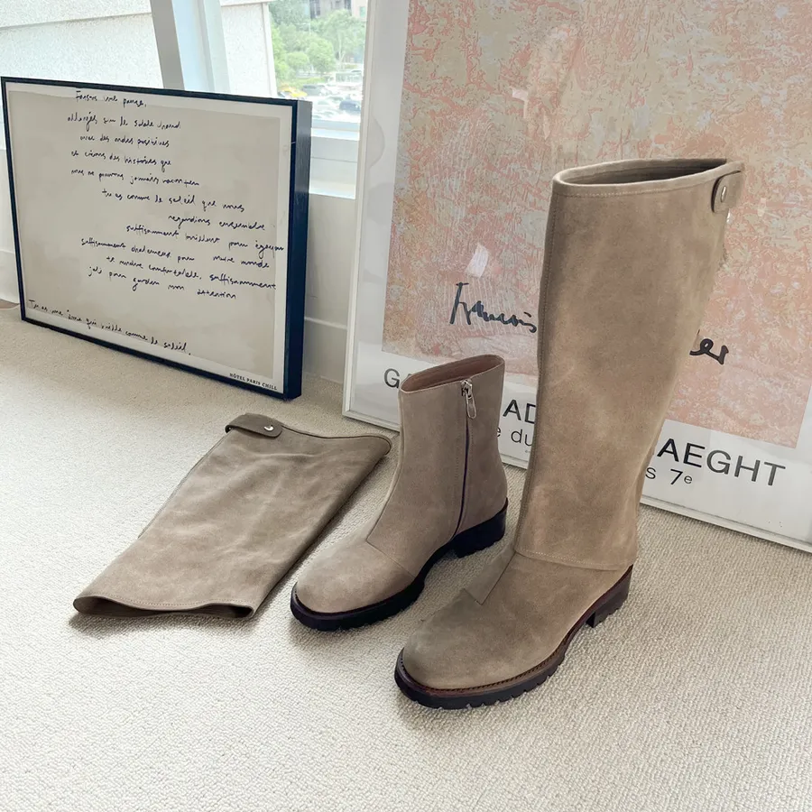 2WAY可變化長短!各種腿型皆適合的真皮靴 卡其 全真皮 【Major Plesure】-燕麥色