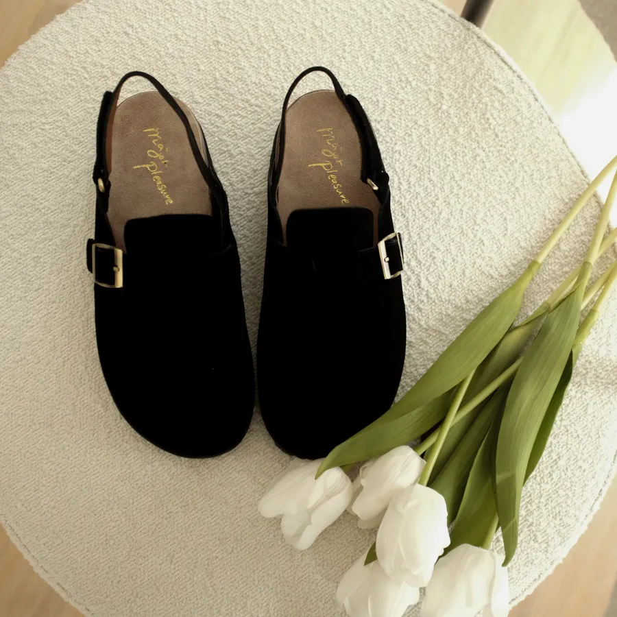 24HR舒適足感!QQ軟糖夾心包頭鞋 黑 全真皮【Major Pleasure】-曼特寧
