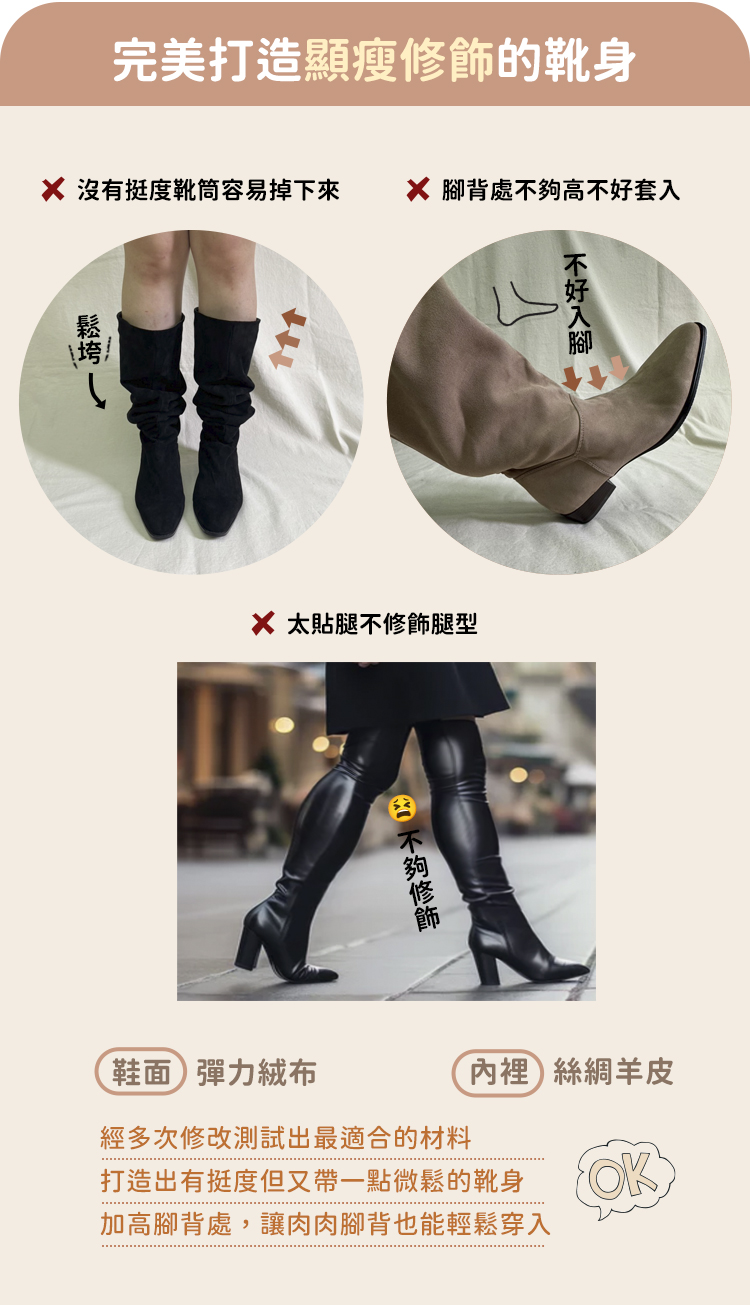 ▸長腿效果!厚底側拉鍊牛皮短靴