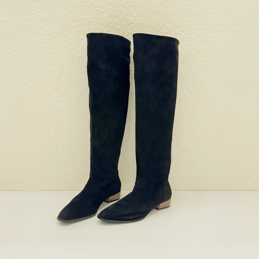 逆天長腿!慵懶鬆弛感極瘦膝上靴 黑 【major pleasure】-黑色