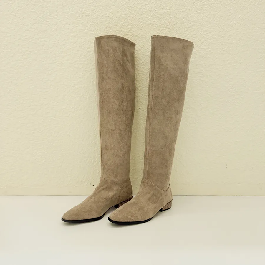 逆天長腿!慵懶鬆弛感極瘦膝上靴 卡其 【major pleasure】-燕麥色