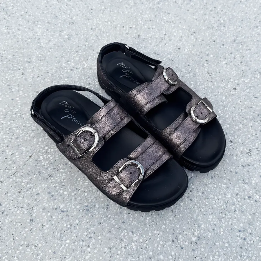 軟糖三釦環!穩步後繫帶涼拖鞋 全真皮 黑銀【Major Pleasure】-星光灰