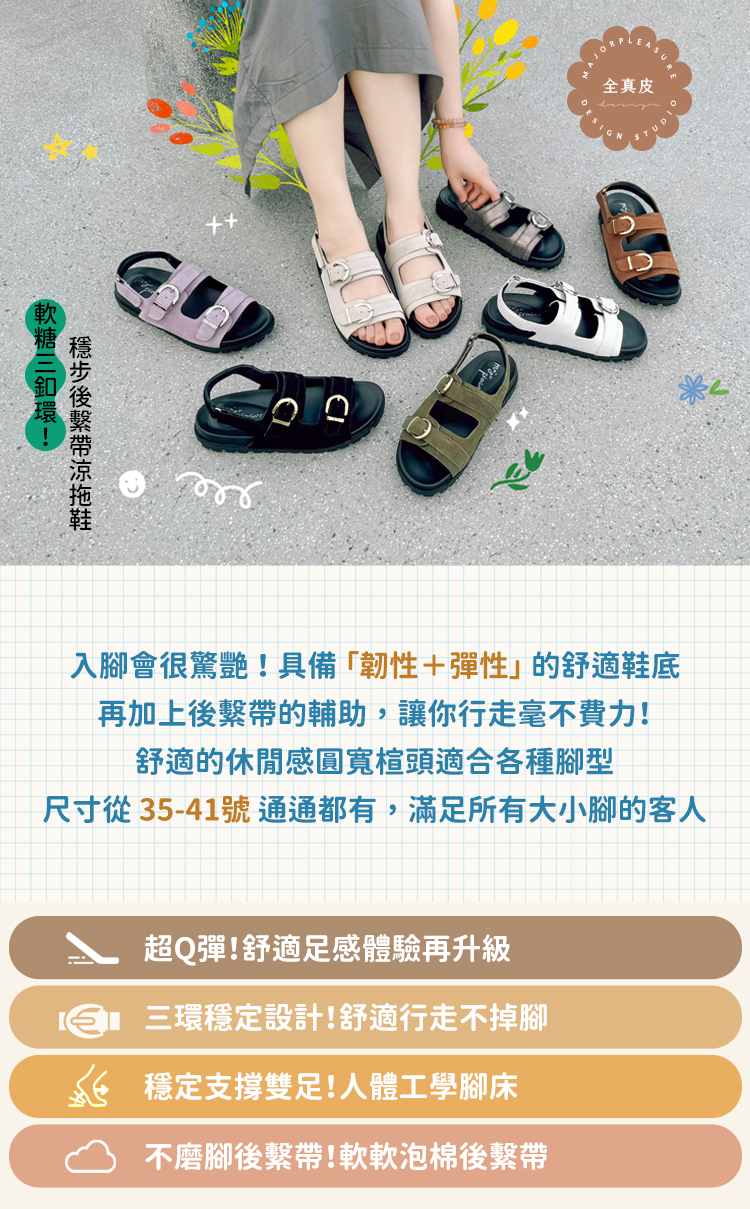 ▸軟糖三釦環!繫帶涼拖鞋