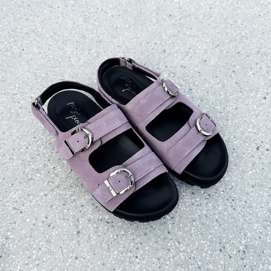 軟糖三釦環!穩步後繫帶涼拖鞋 全真皮 紫反毛【Major Pleasure】-煙燻紫