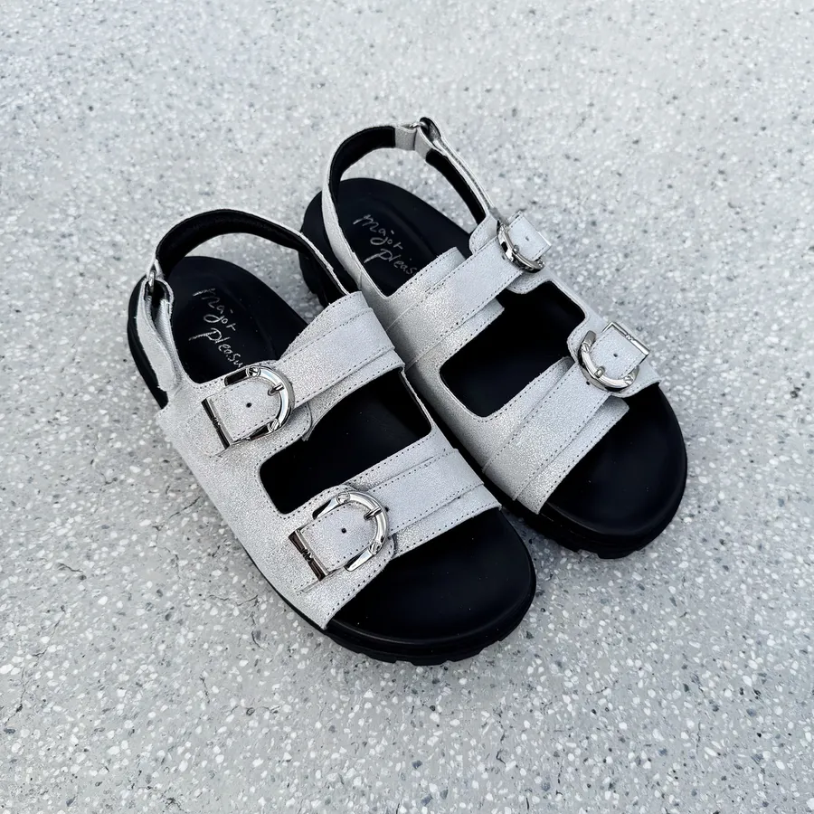軟糖三釦環!穩步後繫帶涼拖鞋 全真皮 銀【Major Pleasure】-月光銀