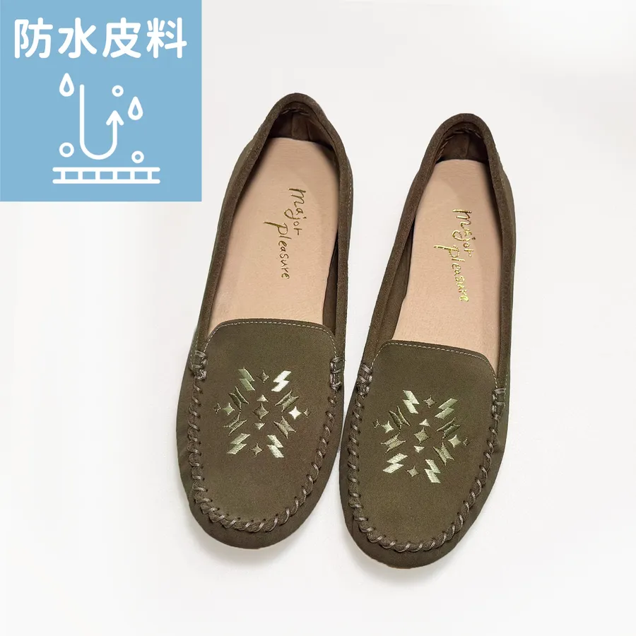 防水皮革!閃電星芒刺繡圖騰手工莫卡辛綠 全真皮 MIT【Major Pleasure】- 森林暮影