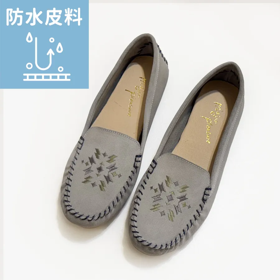 防水皮革!閃電星芒刺繡圖騰手工莫卡辛 灰 全真皮 MIT【Major Pleasure】- 霧岩灰