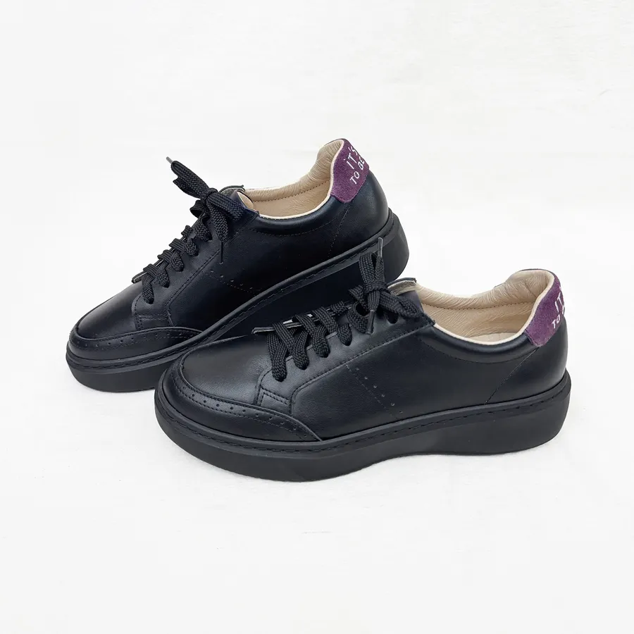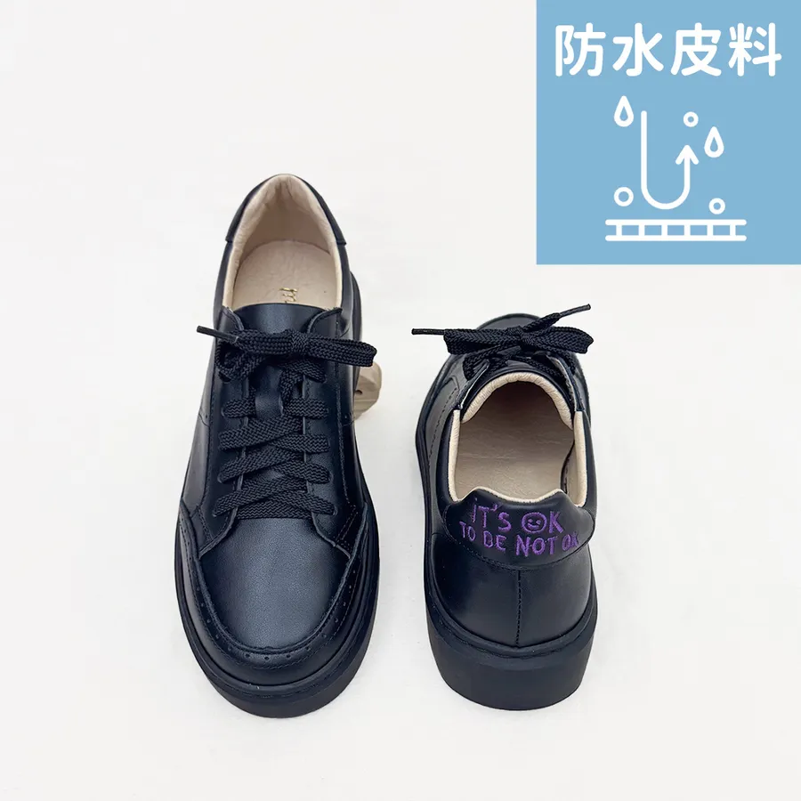 厚底加高!365天舒適防水休閒鞋 黑紫 全真皮 小黑鞋 MIT【Major Pleasure】-巫紫黑貓