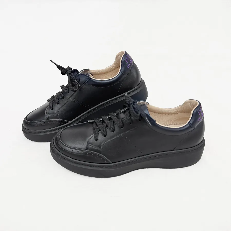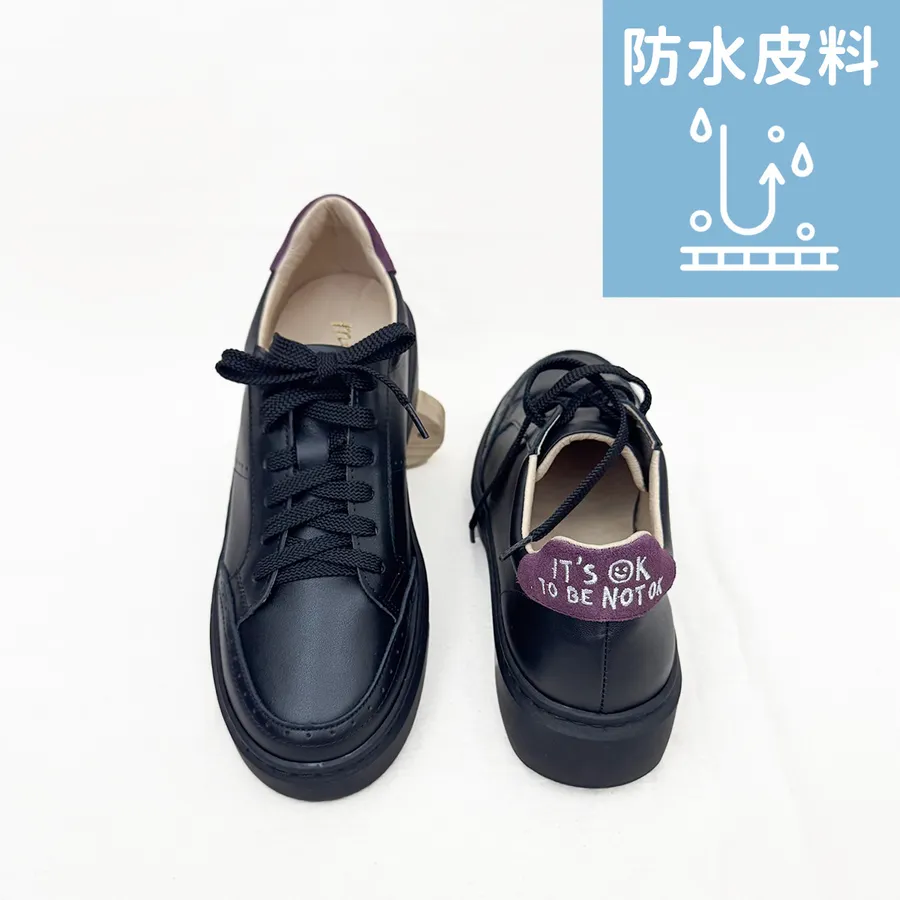 厚底加高!365天舒適防水休閒鞋 黑紫標 全真皮 小黑鞋 MIT【Major Pleasure】-莓果怪獸