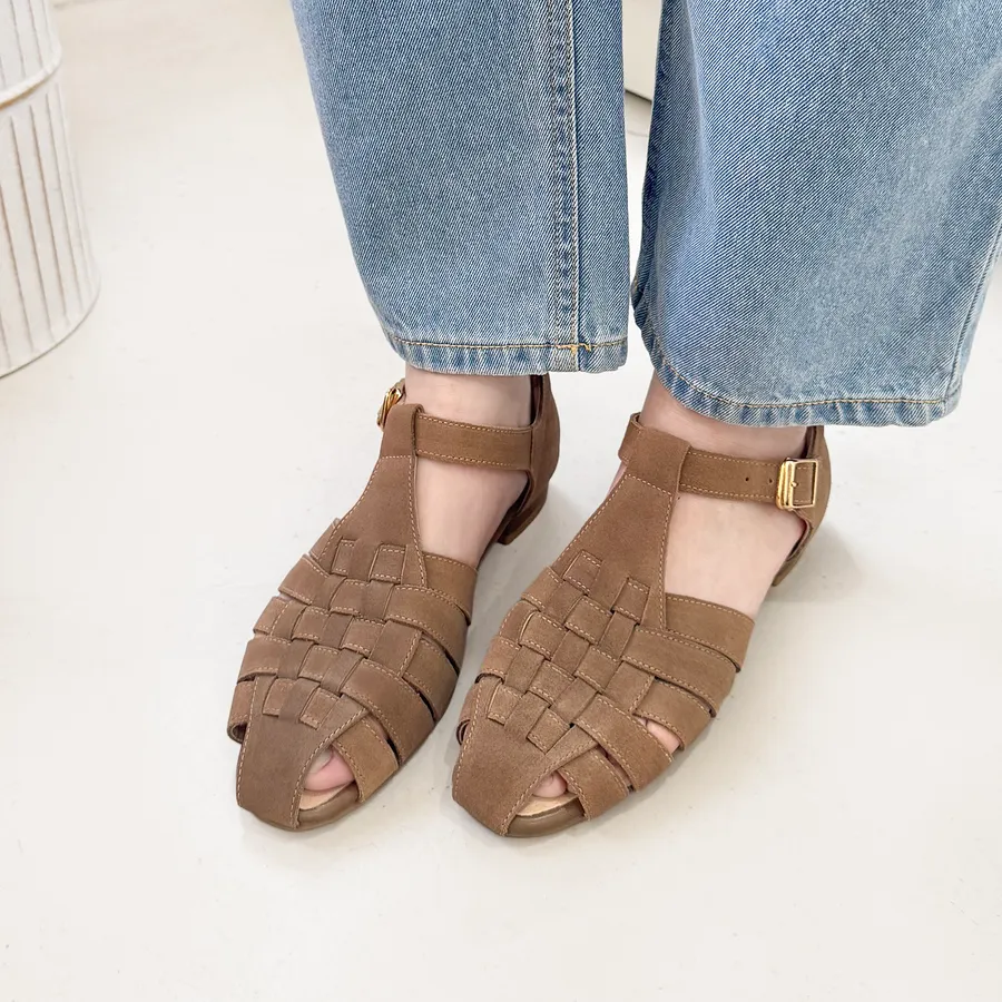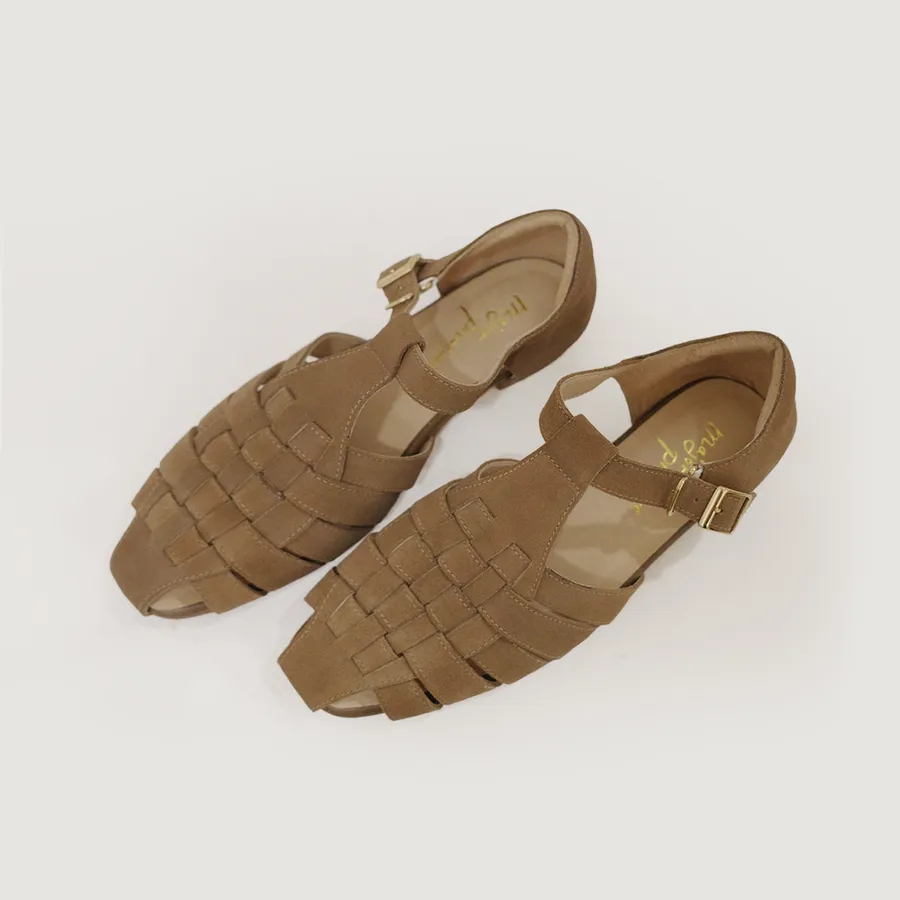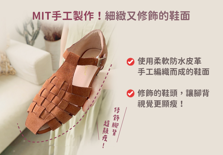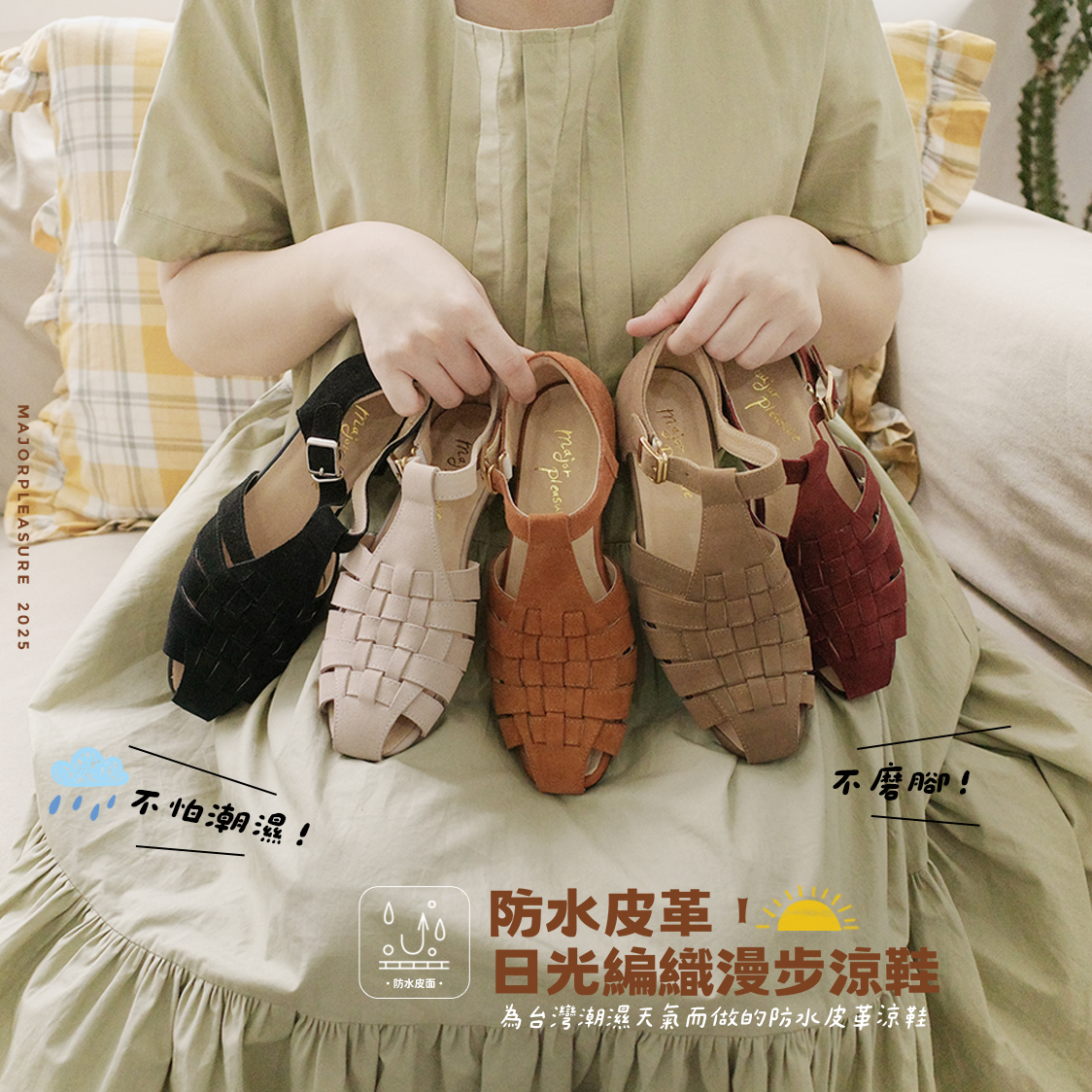 防水皮革!日光編織漫步涼鞋 棕 全真皮 MIT【Major Pleasure】-榛果粒