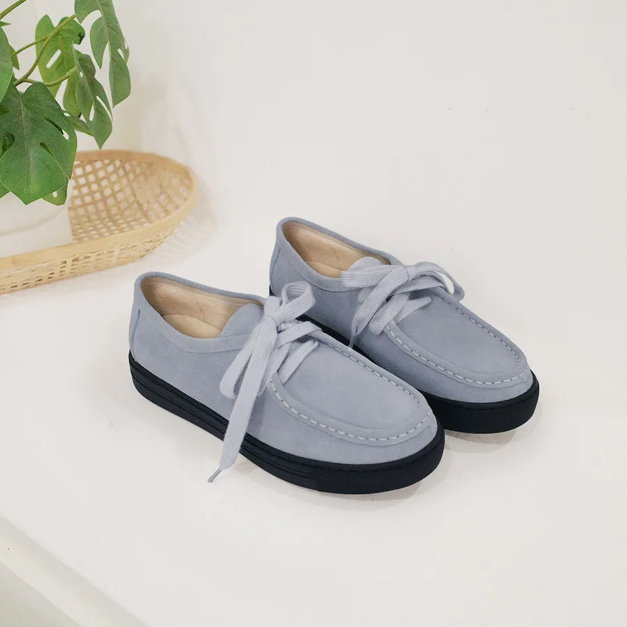 防水皮革!溜溜秋秋厚底袋鼠鞋 雙鞋帶 藍 全真皮 MIT 【Major Pleasure】-礦藍色