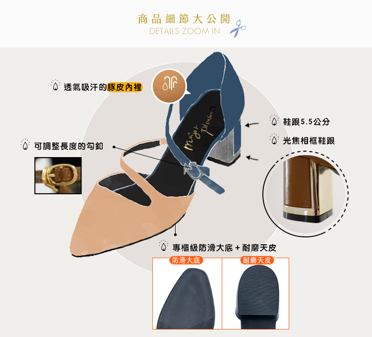 【現貨 22 22.5 24.5號】光焦鞋跟!挖背修飾線條中跟鞋 全真皮 MIT 【Major Pleasure】