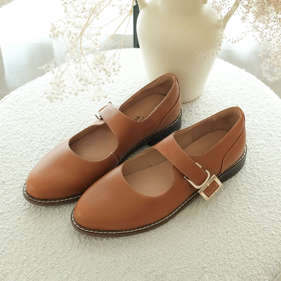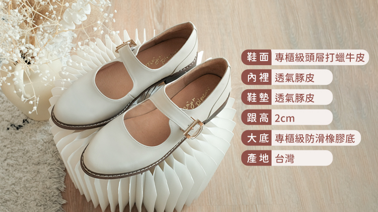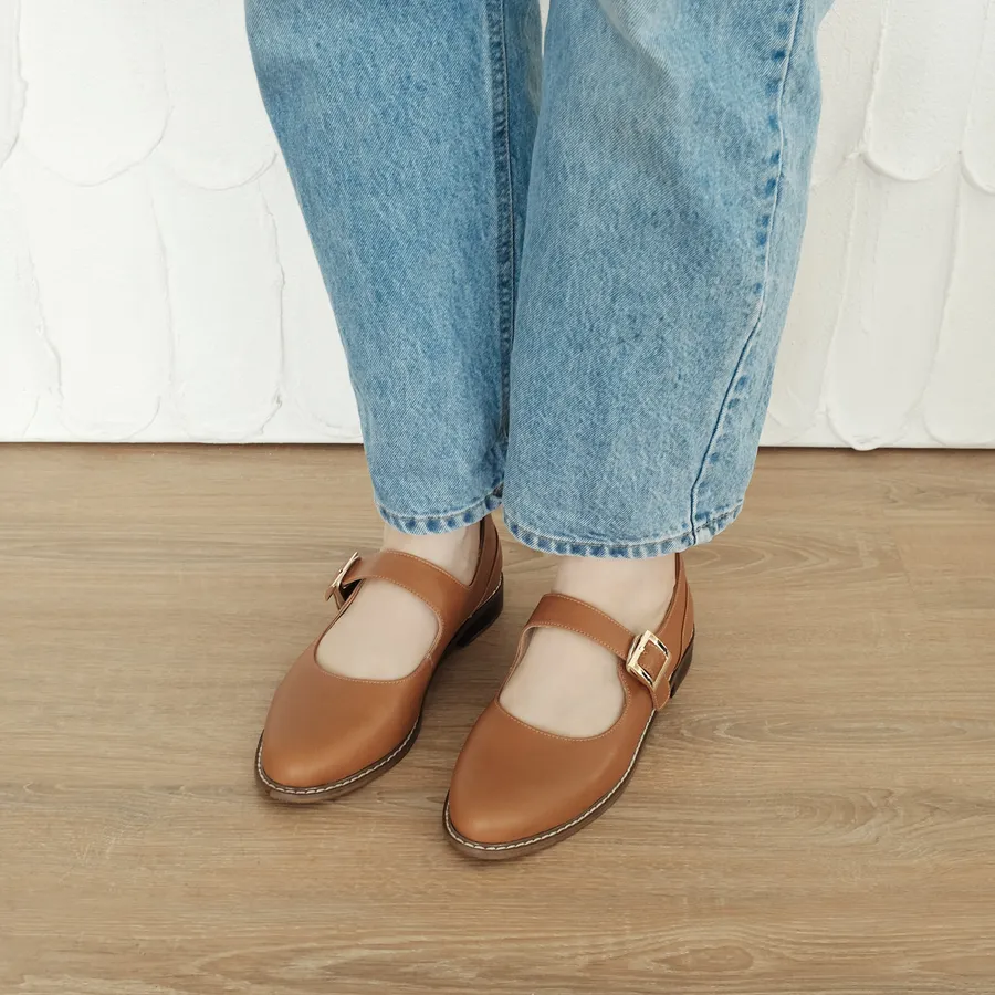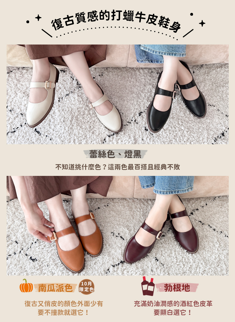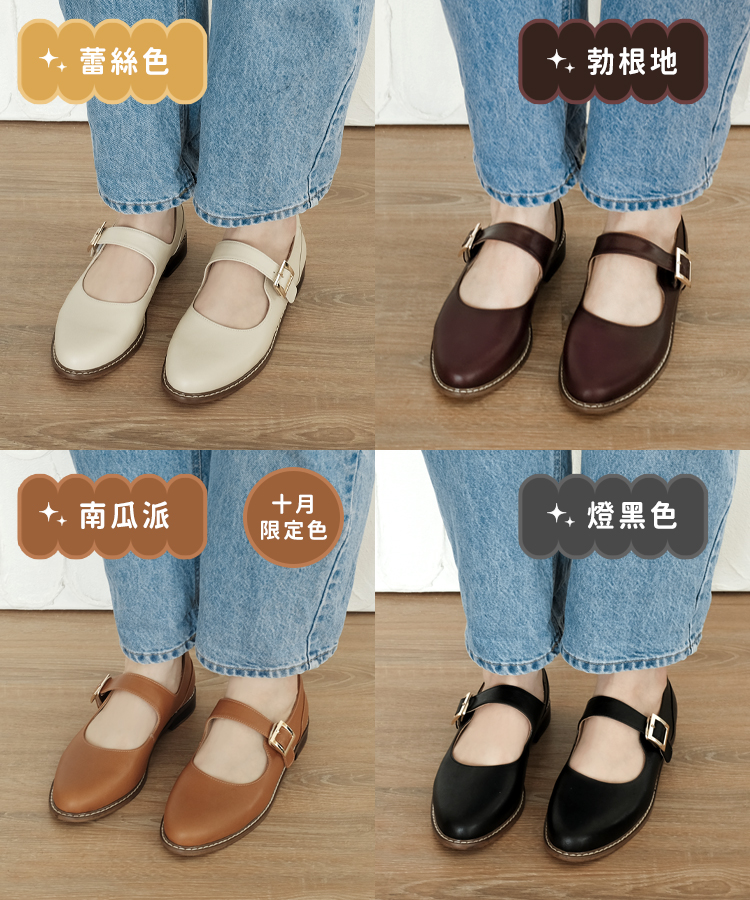 茱莉亞學院!寬帶大方釦瑪莉珍鞋 橘咖 全真皮 MIT【Major Pleasure】-南瓜派