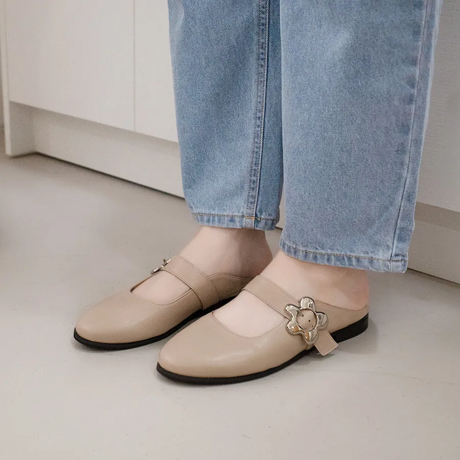 一套就走!雲朵花圈圈瑪莉珍穆勒鞋 膚 全真皮 MIT【Major Pleasure】-小麥花