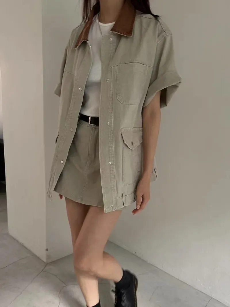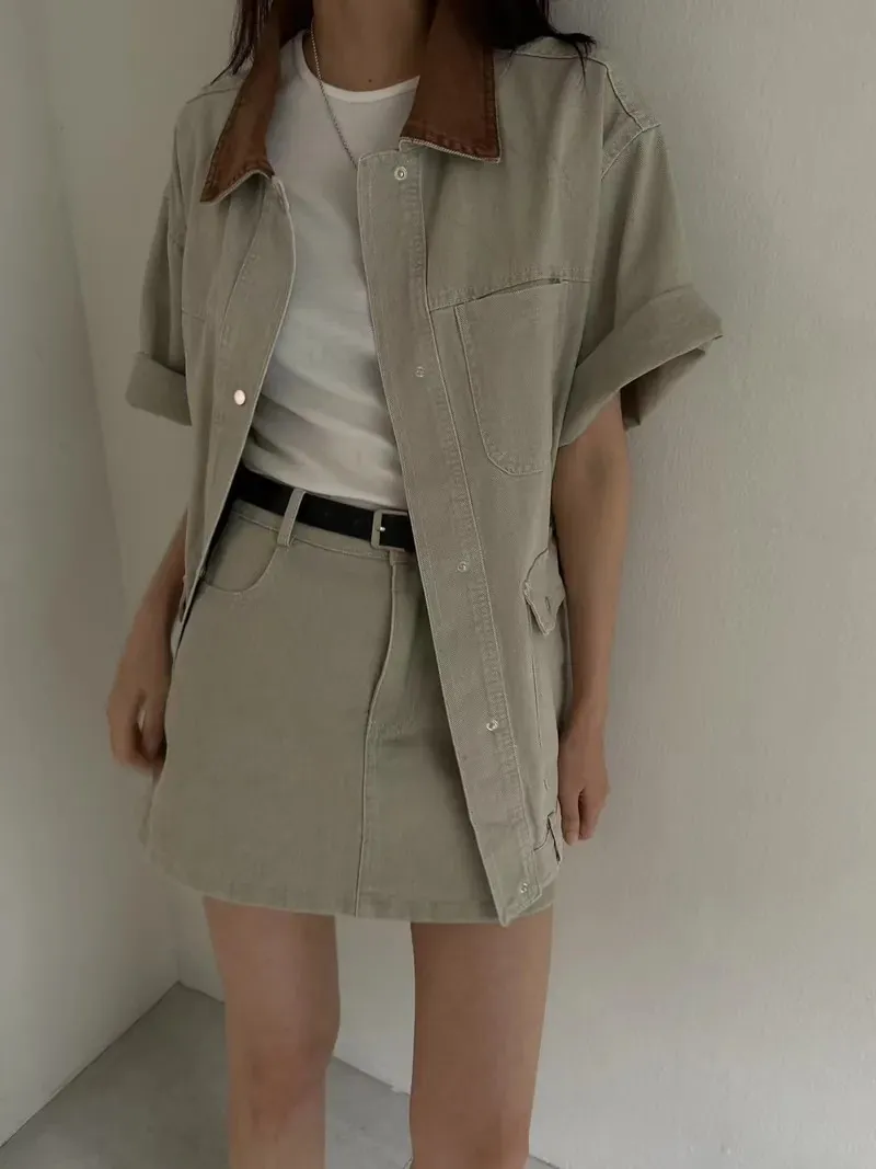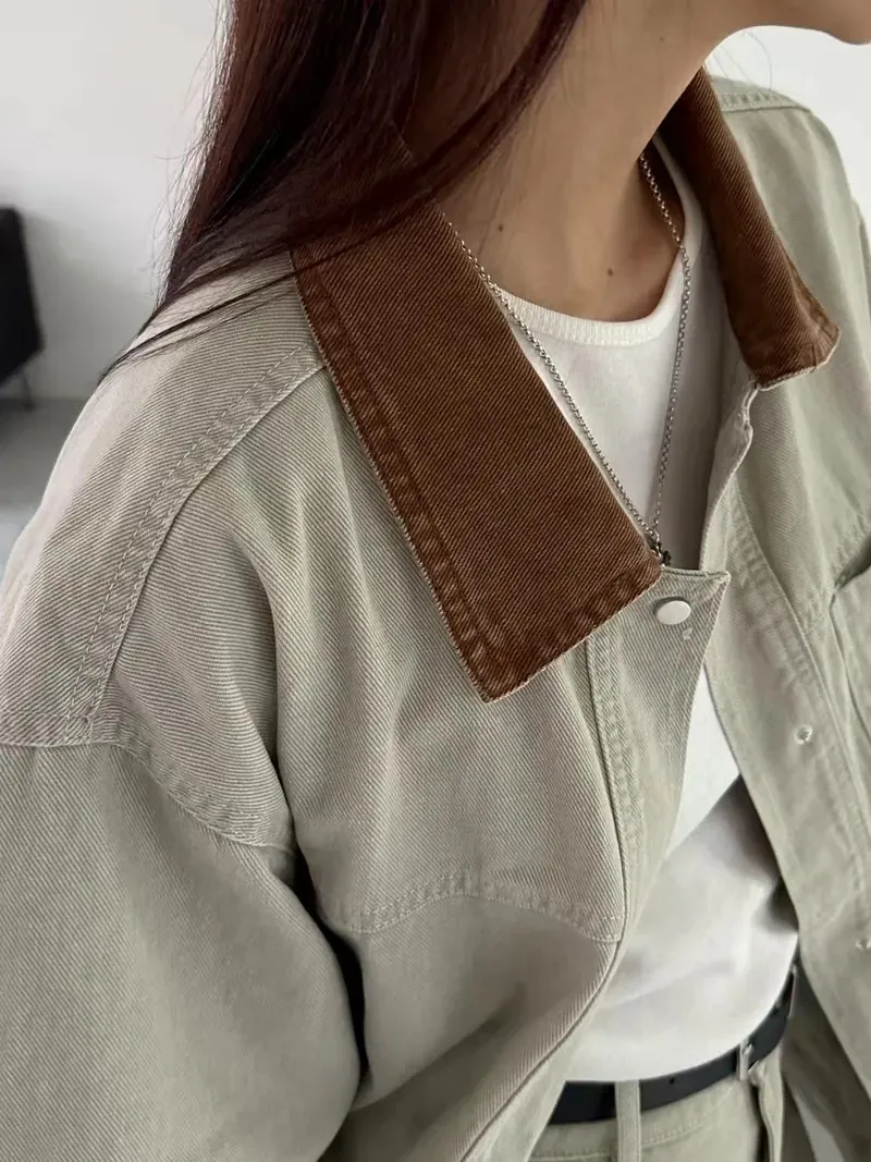 【現貨出清享折扣】老老實實水洗牛仔撞色領夾克 米 色