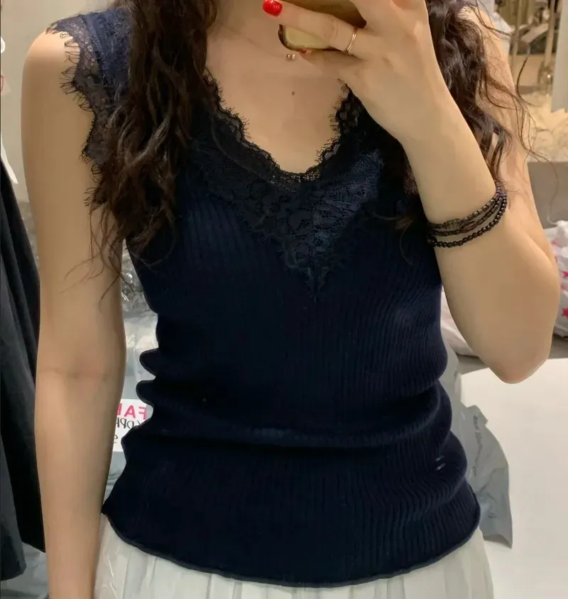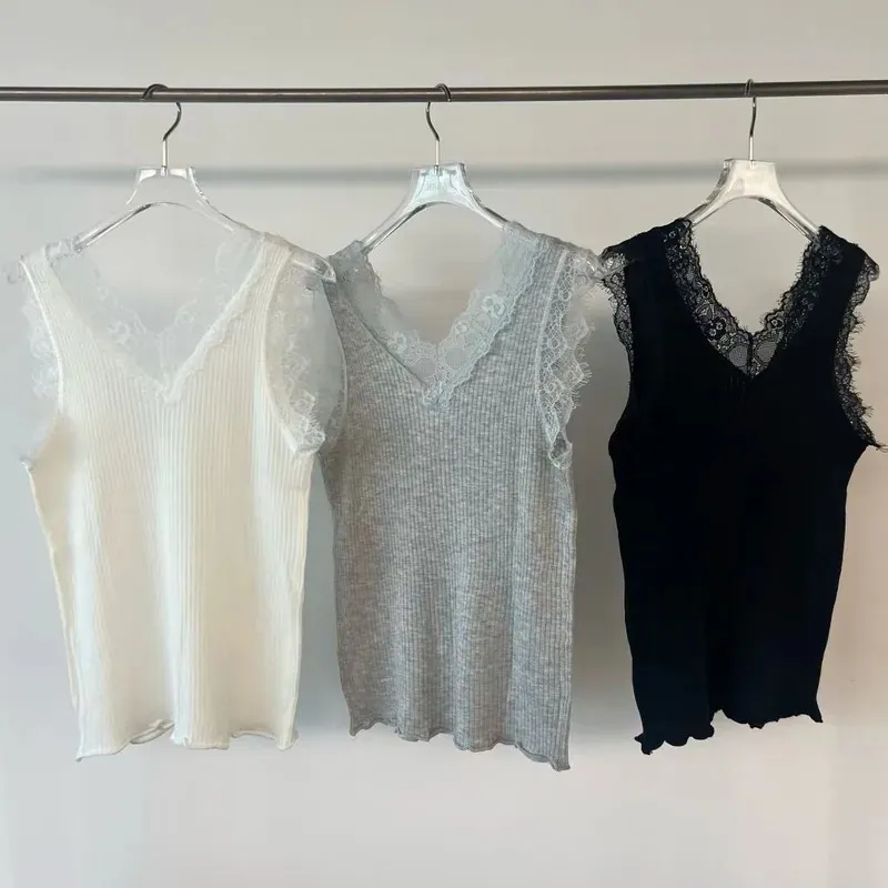 【現貨 白色】彈性很好!蕾絲滾邊內搭背心