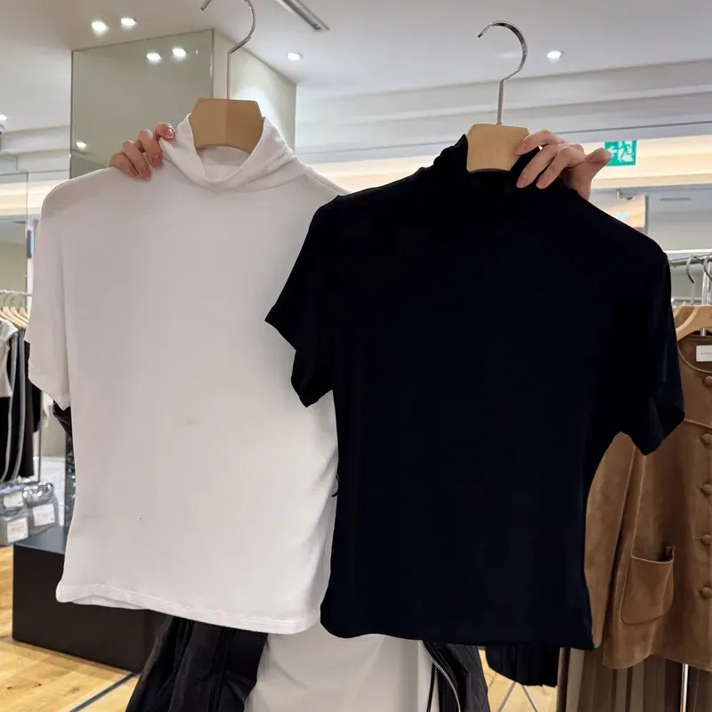 【現貨 黑色】搭配聖品!微高領短袖合身上衣